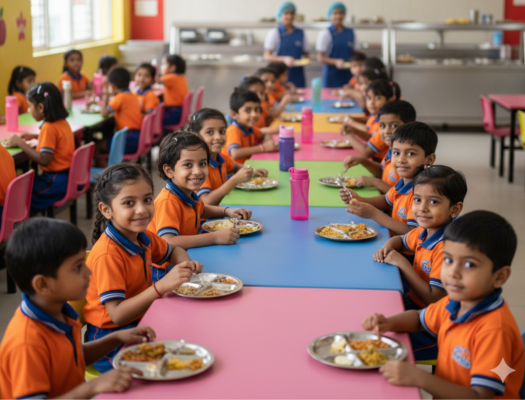 Yes. Our state-of-the-art, super-hygienic kitchen is a key feature of our school. We cook all meals fresh, in-house — never outsourced. This gives us complete control over quality and nutrition, ensuring your child receives a hot, healthy, and safe meal every single day.